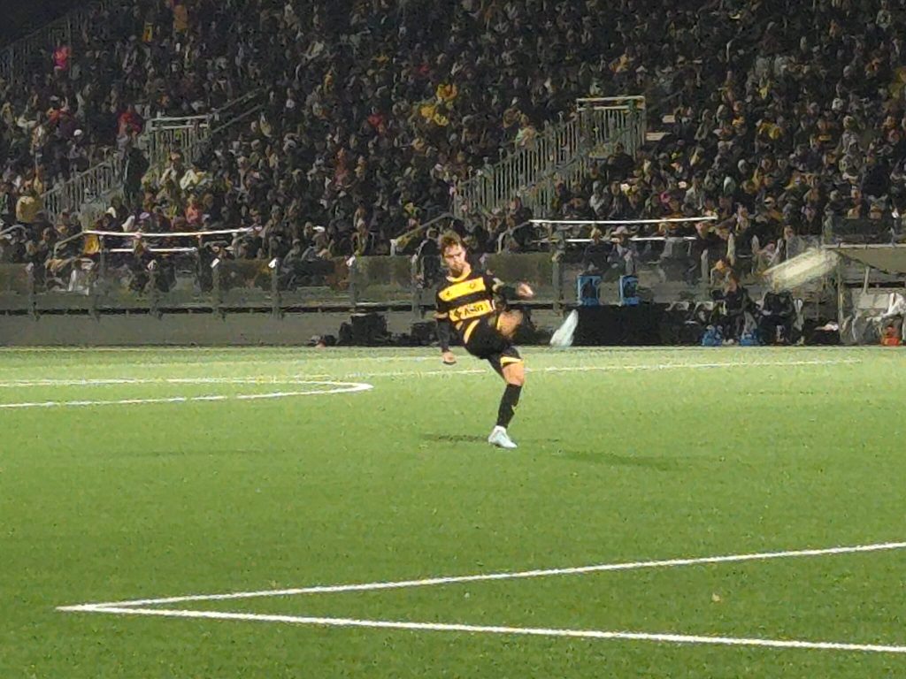 • 19th minute — Augie Williams found space on the right and let fly; his curling attempt drifted left of target and missed by inches, a reminder that chances were scarce and would be precious tonight.