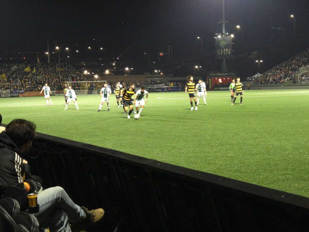 The remainder of the half tightened into midfield battles, with both defenses crowding passing lanes and goalkeepers called on for command of their areas. Pittsburgh carved out promising sequences but could not convert before the break.